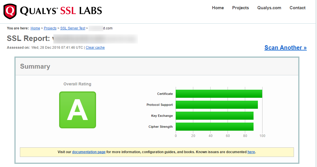 This is an overall scoring to your TLS/SSL configuration, Here I got A, which is nice enough and proves our TLS is working fine.